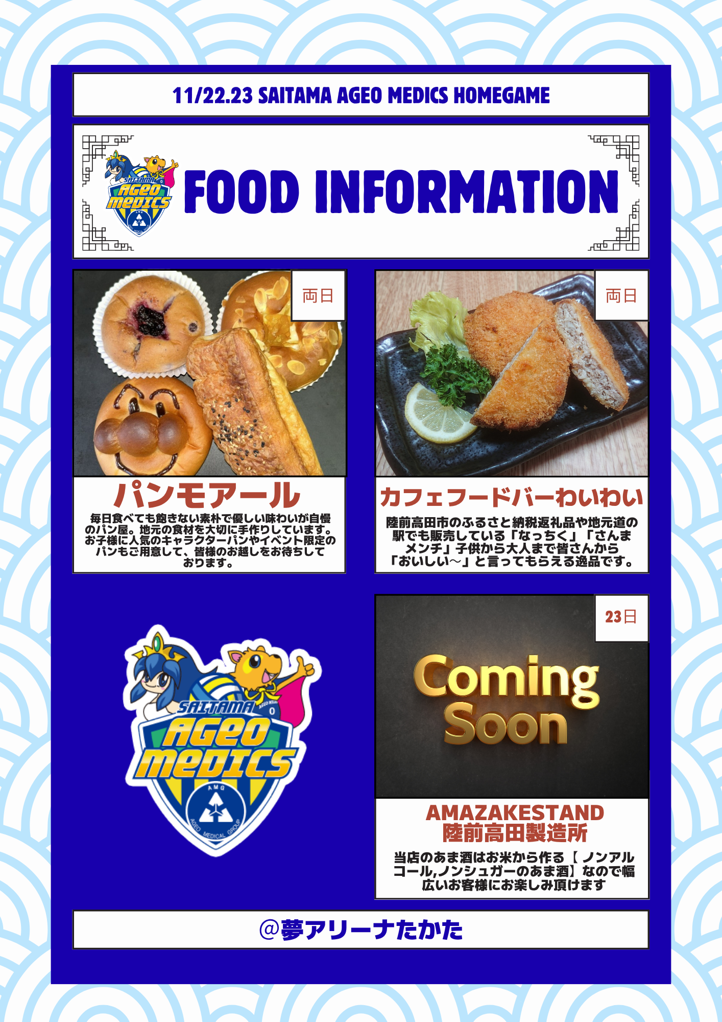 ・アリーナ内での飲食は【2階席は可、1階席は不可】となっております。