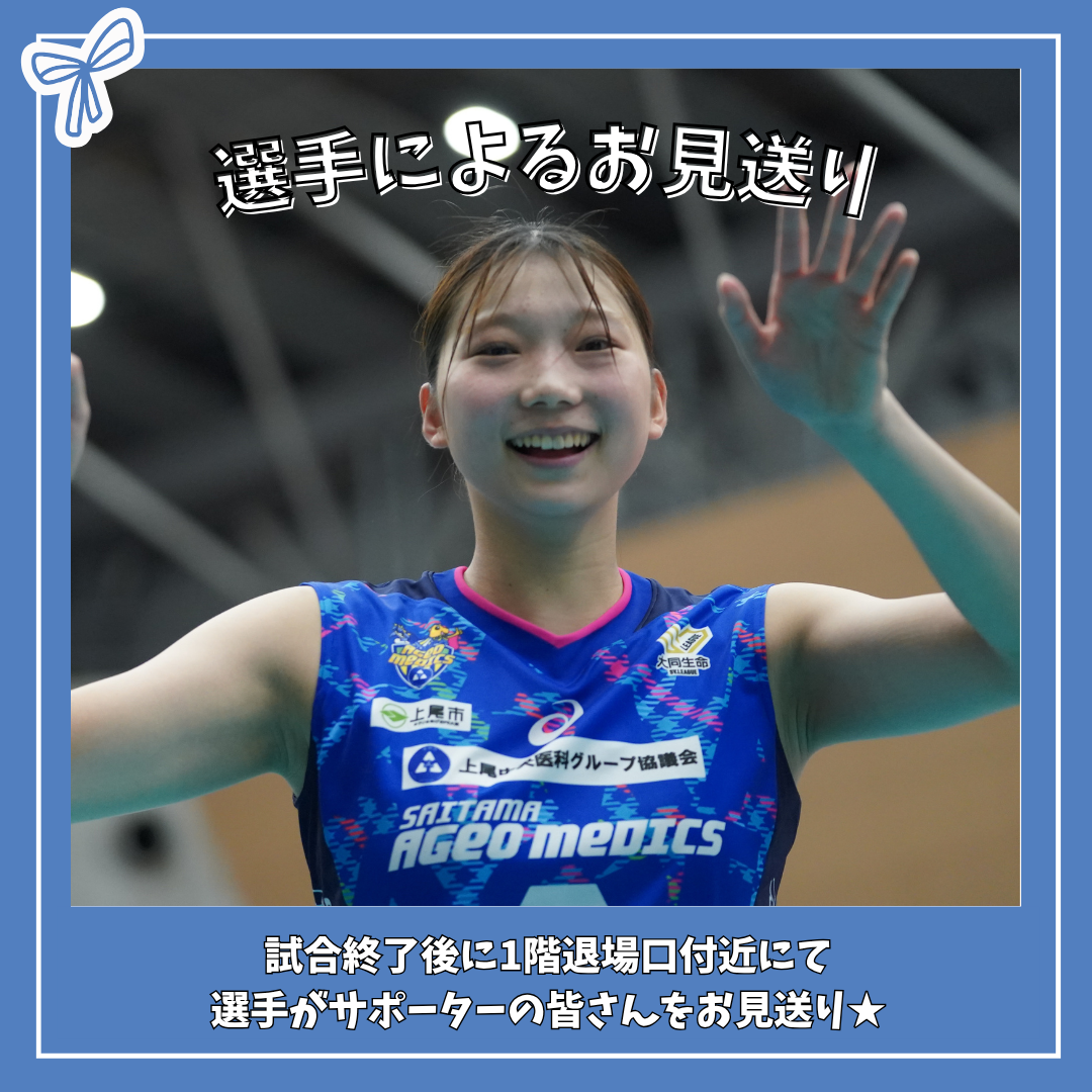 試合終了後に、選手にお見送りイベントを開催いたしますのでそちらにご参加ください。