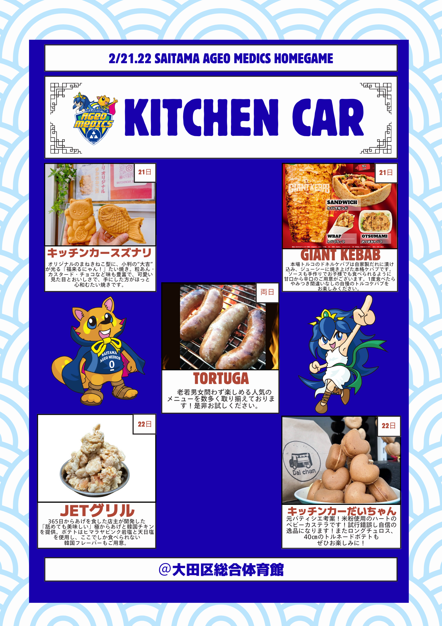 大田区総合体育館にキッチンカーが登場!!おいしいグルメやドリンクをお楽しみください♪