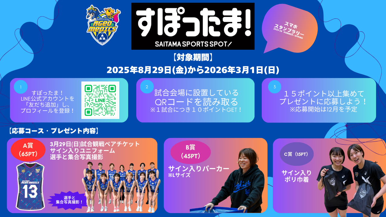 埼玉県内チームの試合観戦へ行き、ポイントを貯めてプレゼントが当たるスタンプラリーを実施!