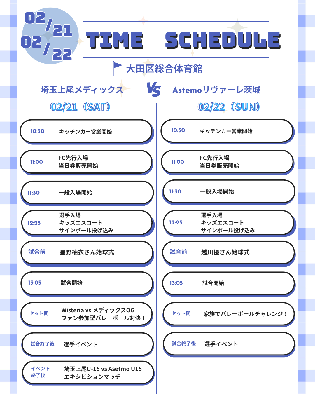 🏐2/21(土)ハーフタイムイベント「Wisteria vs メディックスOG ファン参加型バレーボール対決!」