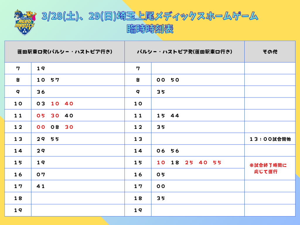 体育館直通便(朝日バス)増便!!ぜひご利用ください!!