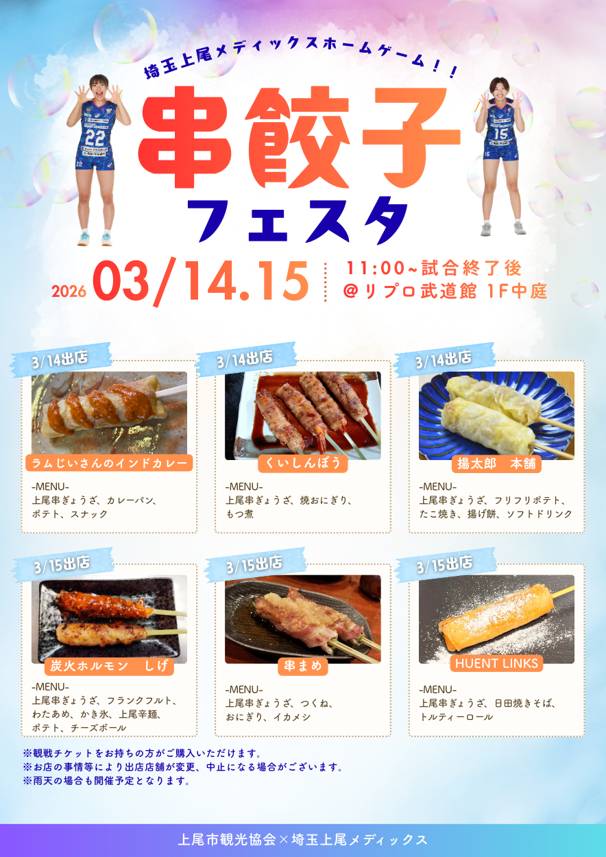 🏐【両日】上尾市のソウルフード!串餃子を販売!