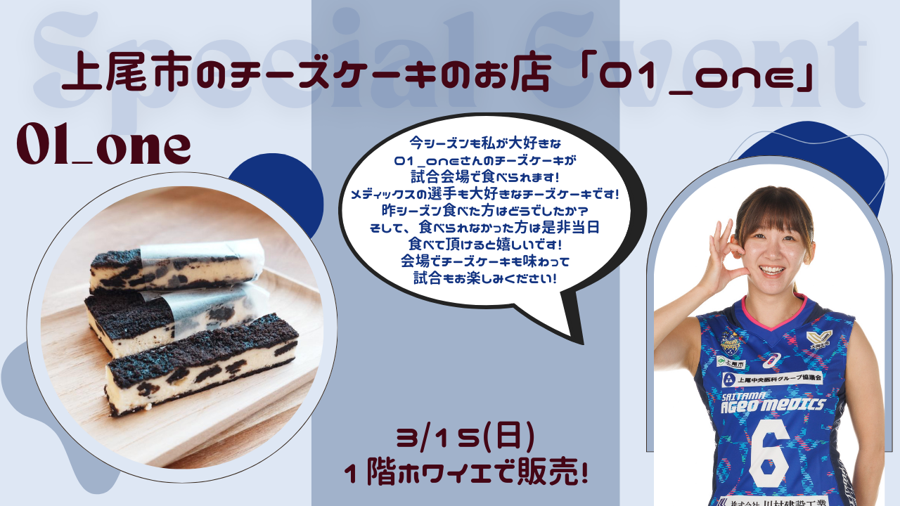 🏐【3/15(日)】上尾市のチーズケーキのお店「01_one」がやってくる!!