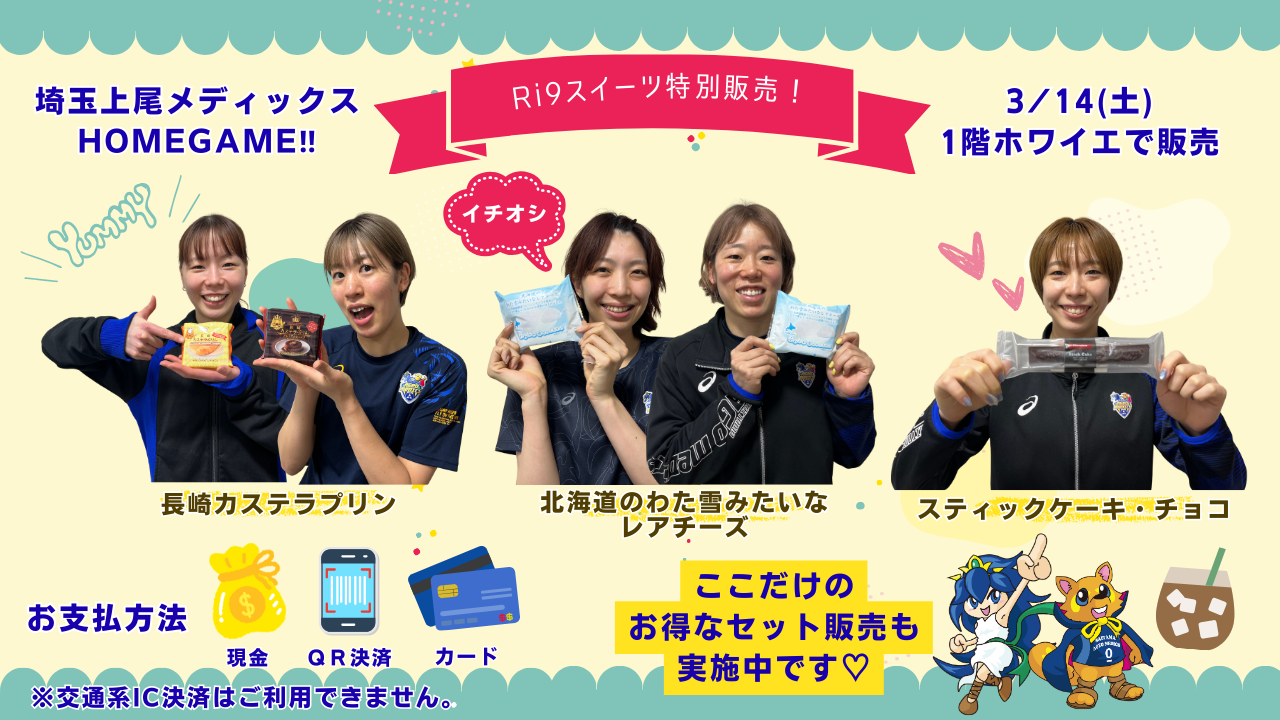 🏐【3/14(土)】Ri9のスイーツ販売を実施!!