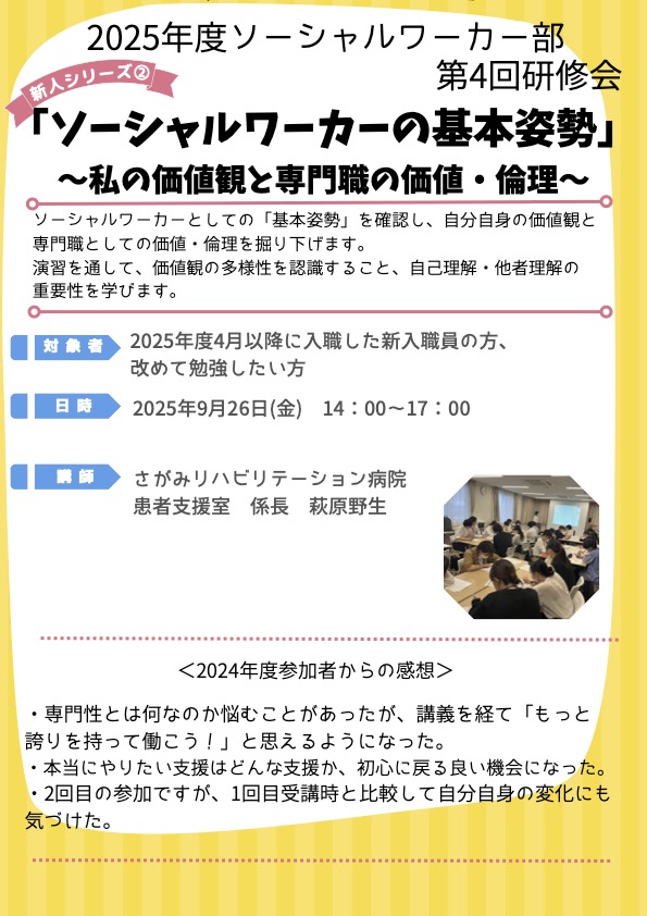 2025/08/18お知らせ2025年度ソーシャルワーカー部 第4回研修会(新人研修)開催案内